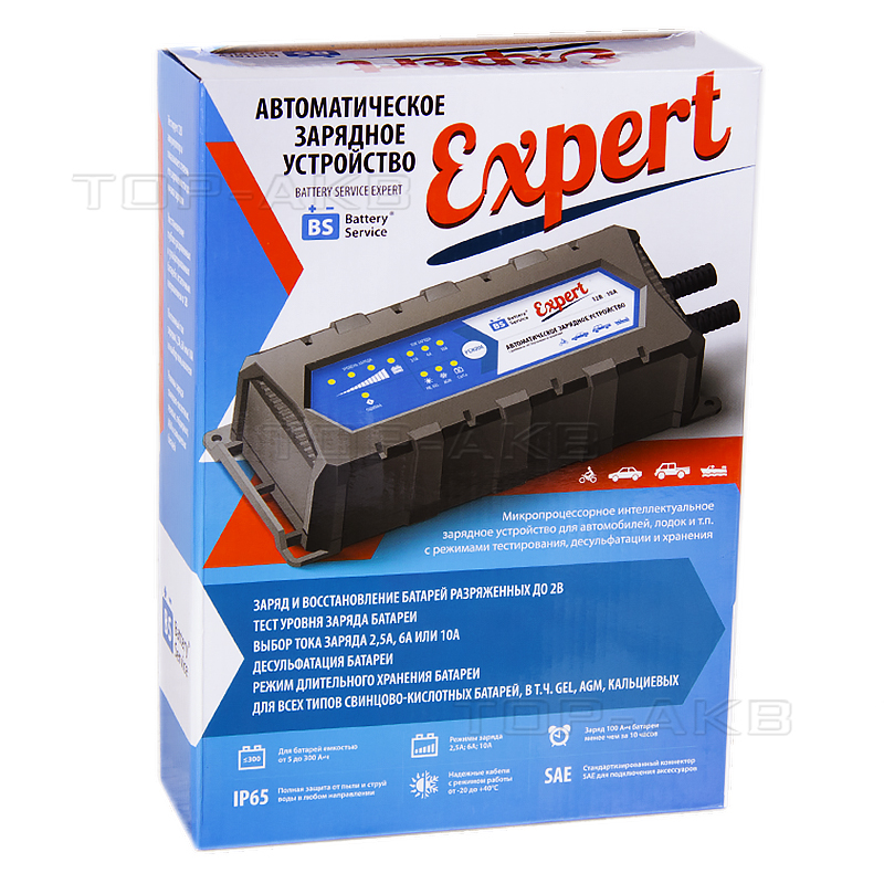 Зарядное устройство Battery Service Expert PL-C010P — настоящее устройство для профессионалов. Выбор тока заряда от 2,5А до 10А покрывает практически все доступные емкости мото, а также автомобильных и промышленных (ИБП) батарей до 240Ач. Рекомендуемый режим 6А для самых распространенных батарей емкостью 60-65Ач.
